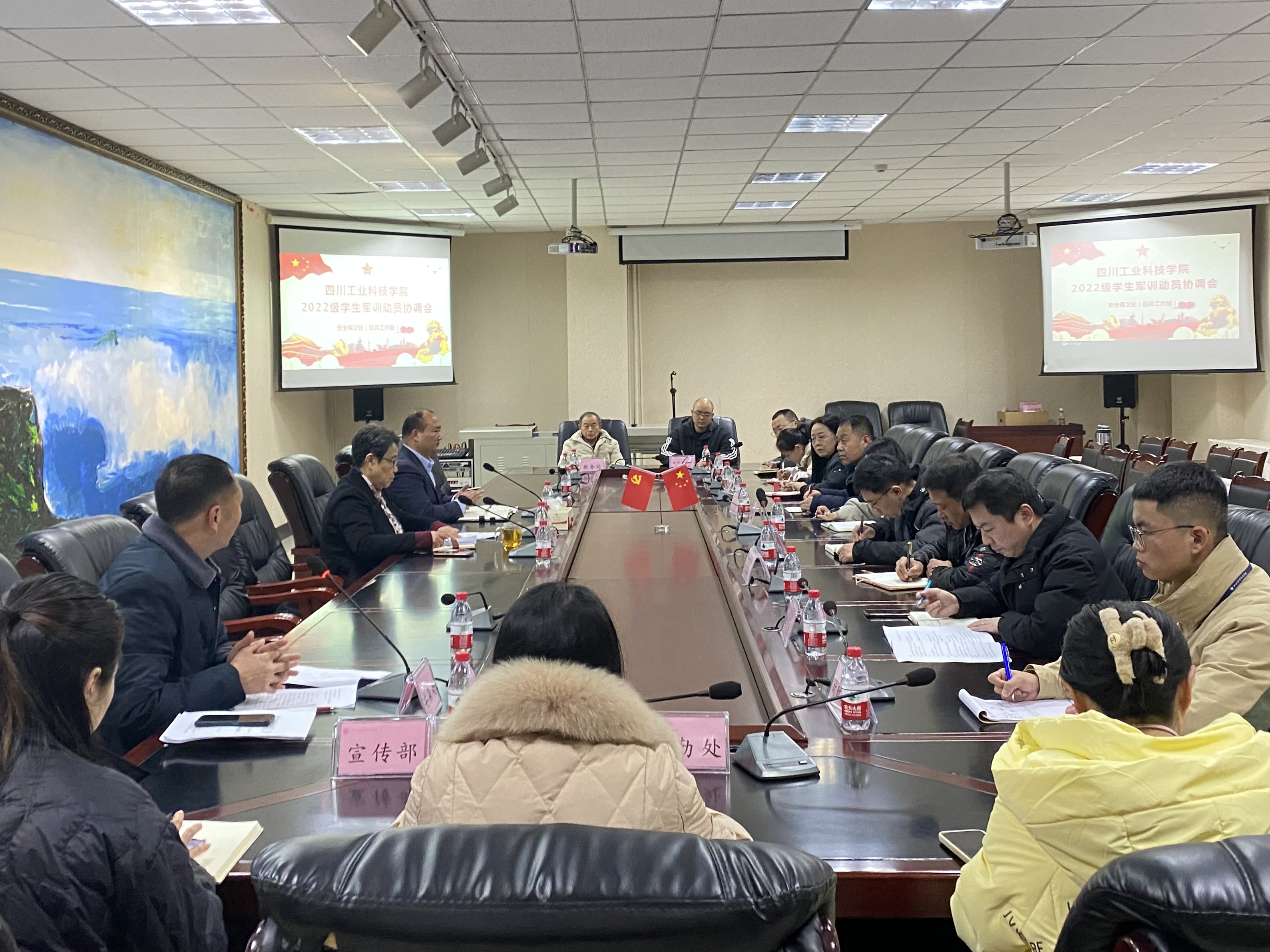 2月10日,我校在图书馆401召开2022级学生军训动员协调会,标志着2022级学生军训工作拉开序幕。副校长郭桂萍出席会议,各相关部门、二级学院负责人参加会议,党委副书记杨朋主持会议。