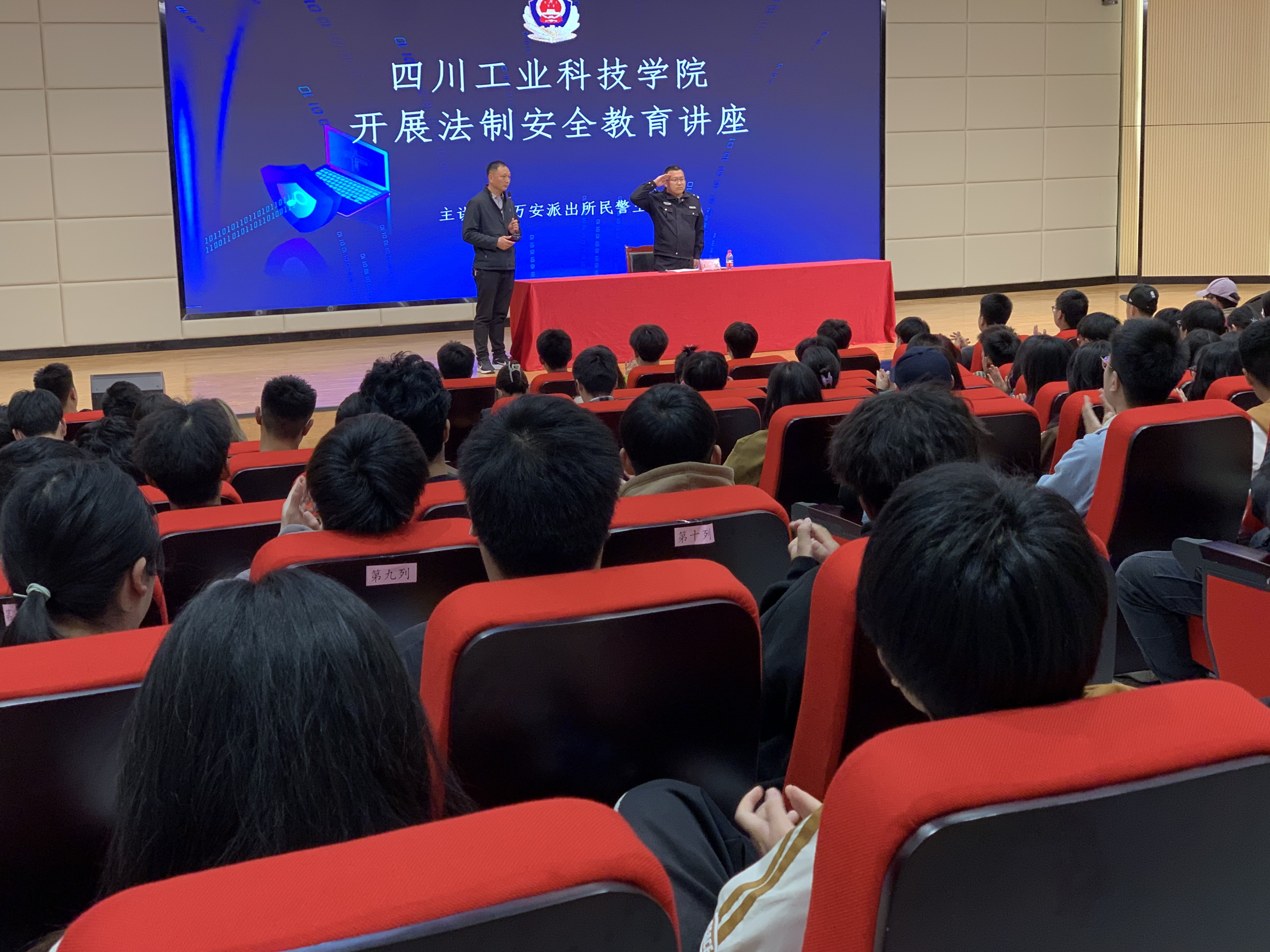 为有效提高全校师生的安全防范意识和自我保护能力,从源头上预防和减少各种安全事故的发生,极力打造安全、文明、和谐的教育教学环境,4月7日下午13:30,我校在报告厅开展法制安全教育讲座,特邀罗江区公安分局万安派出所民警王强主讲,各二级学院辅导员和近300名学生干部参加讲座,讲座由安全保卫处处长雷全祖主持。