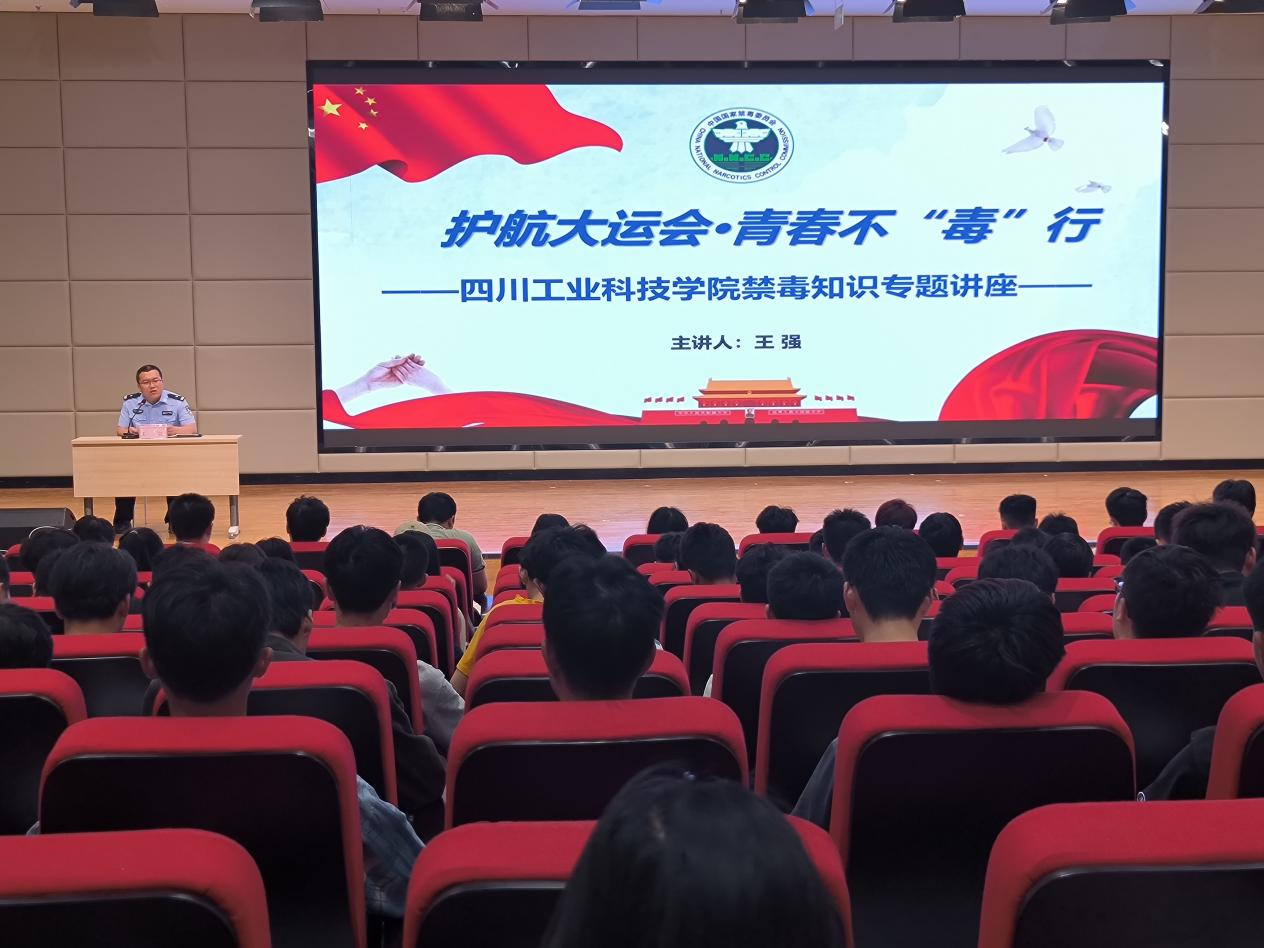 为了持续深化毒品预防教育工作,全面筑牢校园禁毒防线,为成都大运会成功举办营造良好安全环境,6月2日上午,我校在报告厅开展禁毒知识专题讲座,特邀罗江区公安分局万安派出所民警王强主讲,各二级学院辅导员和300余名学生参加讲座。
