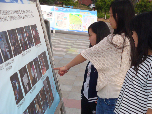 同学们观看宣传展板