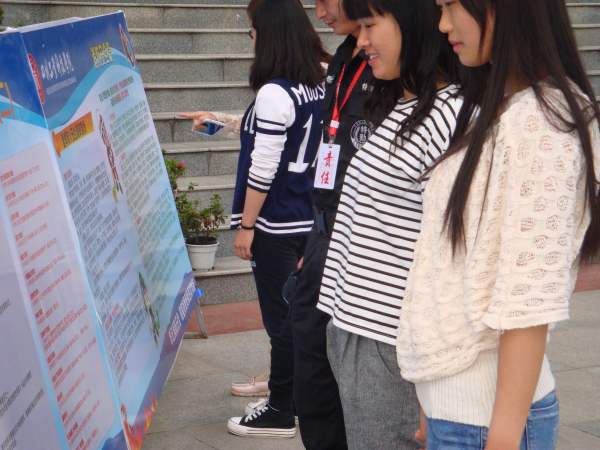 学校师生聚精会神参观展板内容