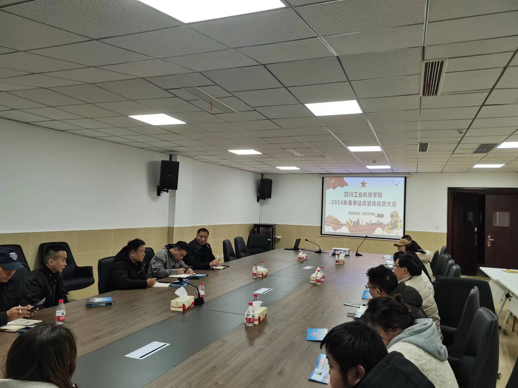 12月19日下午,学校在龑江E514会议室召开2024年春季征兵宣传动员大会。各二级学院党总支(副)书记、学工办主任及安全保卫处(征兵工作站)相关负责人参加会议。