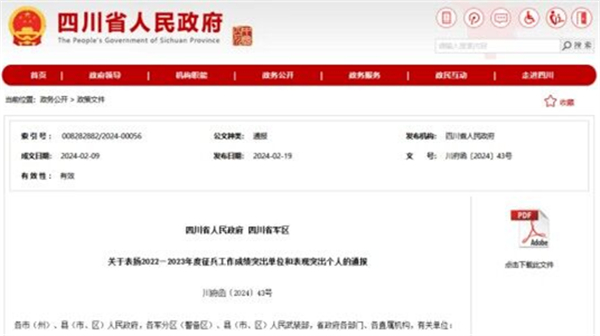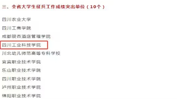 近日,四川省人民政府、四川省军区发布《关于表扬2022—2023年度征兵工作成绩突出单位和表现突出个人的通报》,学校获评“全省大学生征兵工作成绩突出单位”。