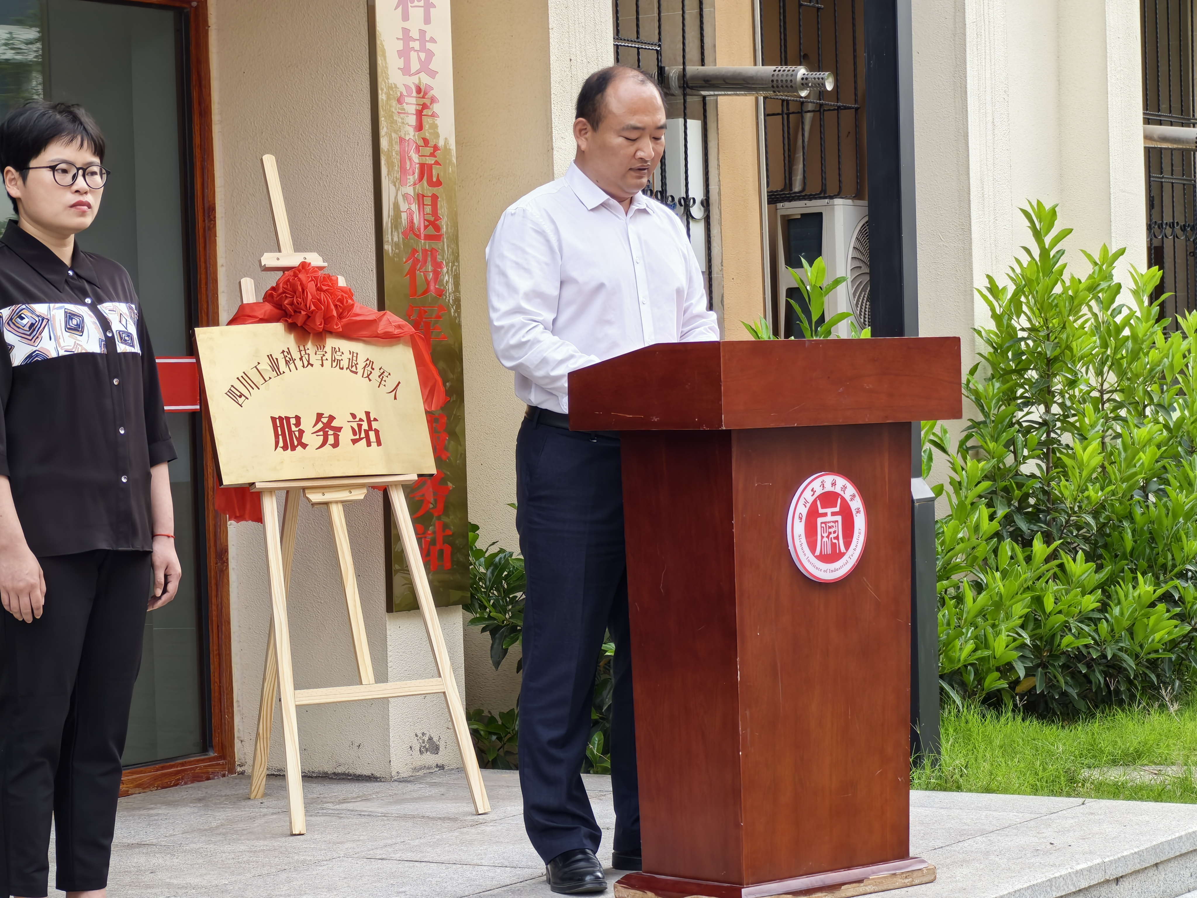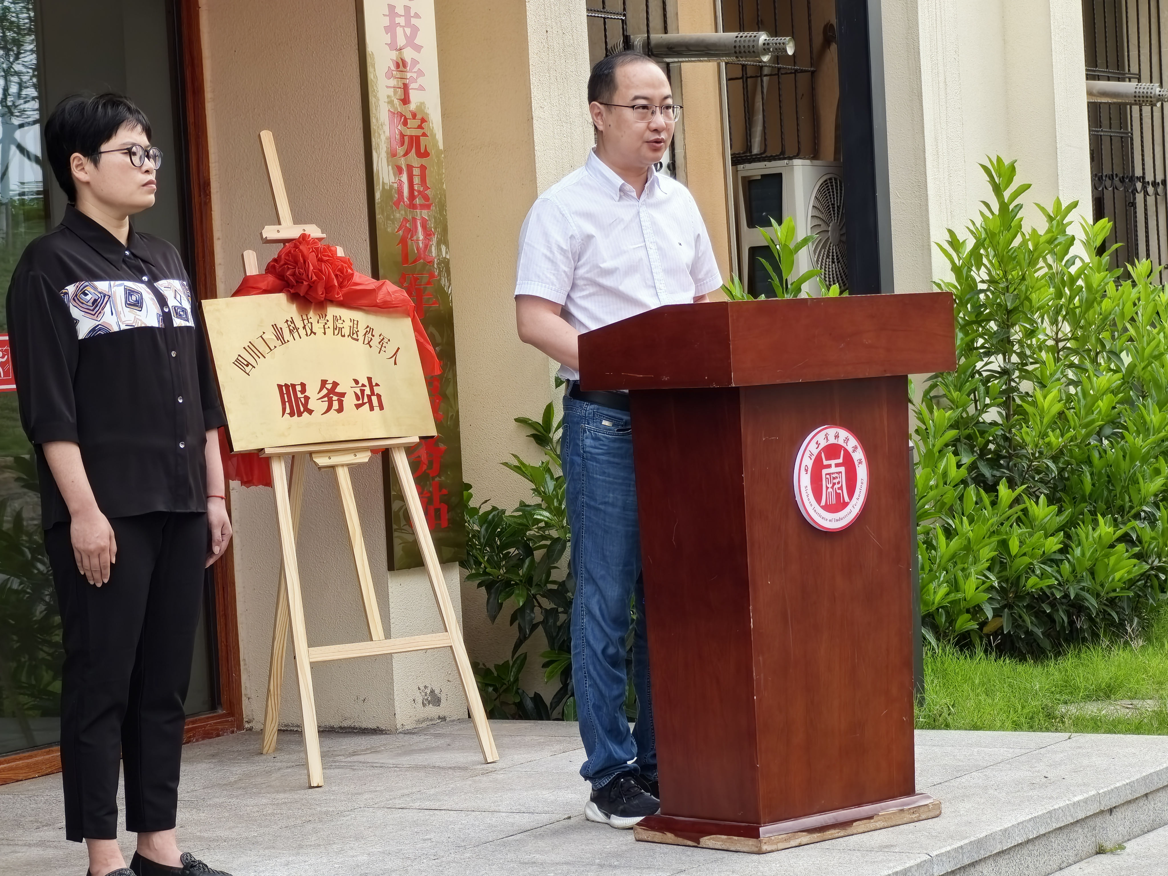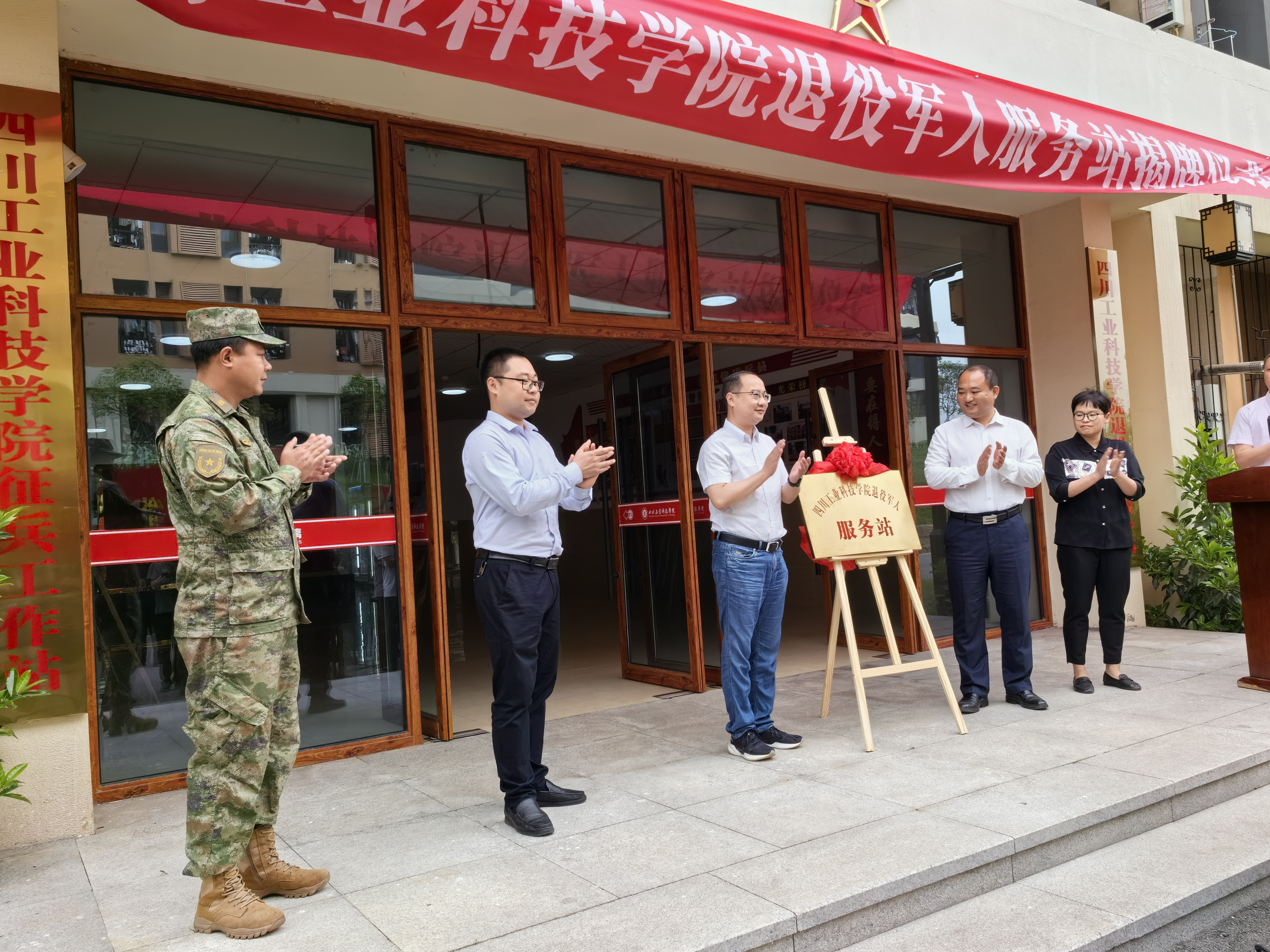 仪式伊始,刘熙和杨朋共同为我校退役军人服务站揭牌,标志着罗江区首家“高校退役军人服务站”在我校正式授牌成立。