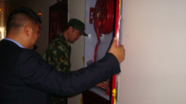 首先,杨勇介绍我校消防安全管理工作开展情况。之后,检查人员走进学生公寓等人员密集场所查看了配备的灭火器、消火栓运行情况。廖鹏大队长还亲手测试了部分消火栓水管的供水状况,并就如何应对突发事故与安全保卫处负责人进行了深入的询问和交流。