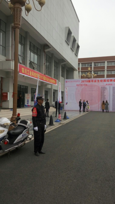 中午12点,保卫人员统一着装准时就位,按照工作计划设置了必要的安防和交通设施,确保了参会近100辆小车有序停放;安全保卫处副处长杨勇深入招聘会现场,协调各组工作,并督促全体安保人员随时保持信息畅通。活动期间,全体保卫人员服从安排、齐心协力、相互协作,圆满地完成了本次招聘会的安保任务。