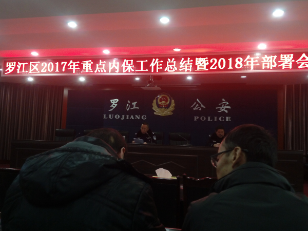 会议总结了2017年德阳市罗江区内保工作开展情况。叶朝亮对2018年全区内保工作提出了新的部署:一是大力推进单位防控网,做好情报信息的搜集工作;二是依托内保优势,加强群众组织工作;三是完善单位视频监控系统,实现资源共享;四是建立联防共建共享的协作管理机制;五是做好内部反恐防暴的摸排工作,措施落到实处,确保全区各内保单位的安全稳定。