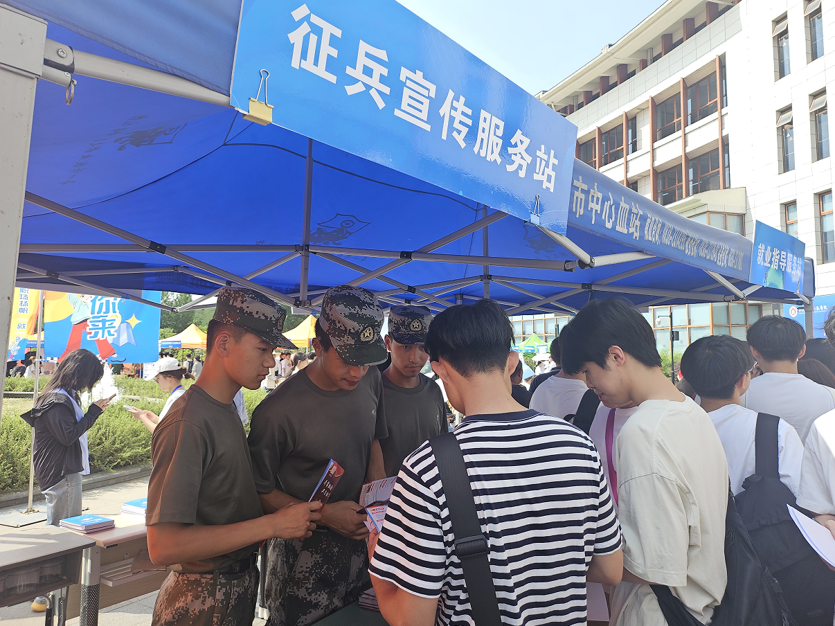 为进一步激发大学生参军报国的热情,5月22日,安全保卫处在学校2025年春季校园招聘会上,设立征兵宣传服务站进行征兵宣传工作。