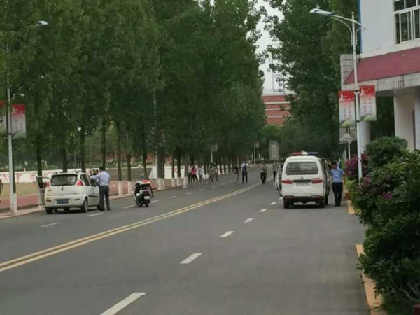 2015年5月12日上午11:10左右,绵竹校区一名校外男性冒充学生家长经门卫登记允许后开车进入学校,该车行驶至图书馆处便加速行驶并鸣笛,值班人员杨谭全见状,立即上前拦截并将该情况上报安全保卫处副处长雷全祖,雷全祖闻讯后,迅速组织安保人员赶赴现场进行处置。