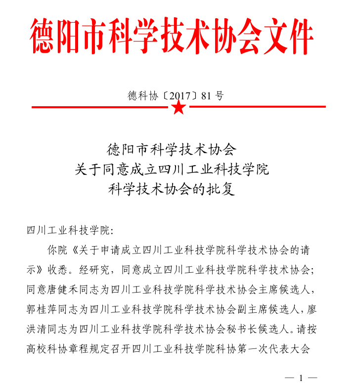 近日经德阳市科学技术协会批准同意,四川工业科技学院科学技术协会要成立了。