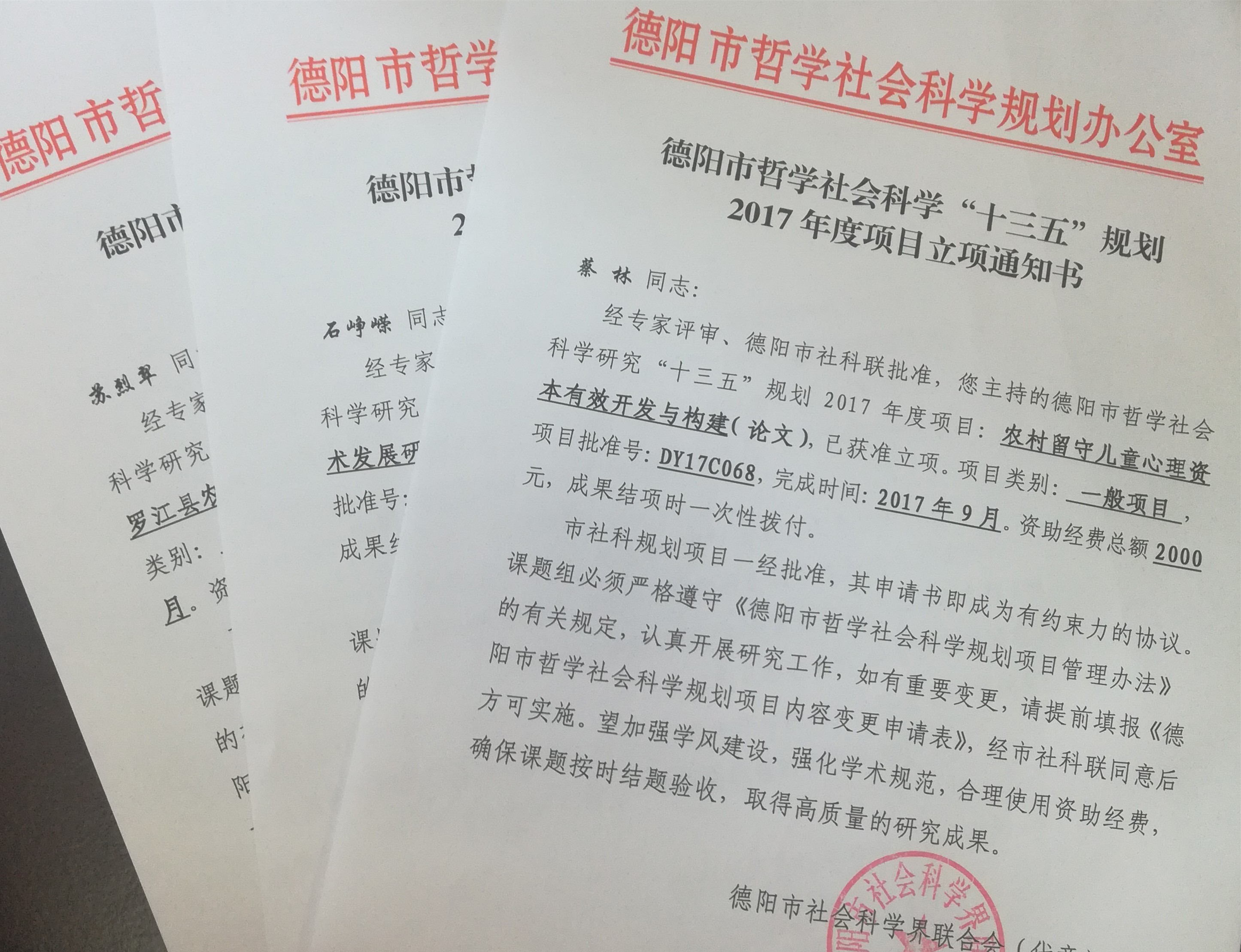 近日,德阳市社科联公布2017年度“十三五”规划专题科研项目立项名单,我校有3项获得立项,他们分别是:交通学学院石峥嵘老师负责的《德阳市新能源汽车技术发展研究》、人事处苏烈翠老师负责的《 城乡统筹发展背景下罗江县农业产业化 经营模式研究》和学生处蔡林老师负责的《农村留守儿童心理资本有效开发与构建》项目。对于此次项目,学校领导和各二级学院高度重视,措施到位,申报的课题撰写规范,针对性强,具有较高的社会影响和应用价值,是近年来我校立项成功率较高的一次。