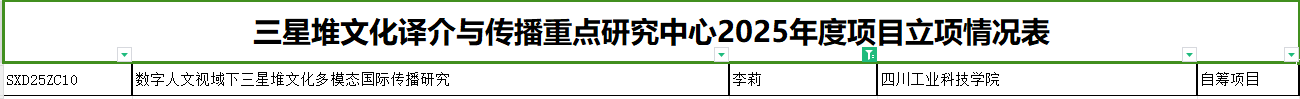 近日,三星堆文化译介与传播重点研究中心公布了2025年度项目立项名单。学校李莉教师申报的《数字人文视域下三星堆文化多模态国际传播研究》项目顺利立项。