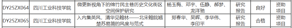 近日,德阳社科联公布了德阳市哲学社会科学规划2025年“德阳优秀传统文化保护传承研究阐释”专项课题结项名单,学校杨玉梅和郑春华教师分别主持的《微更新视角下的绵竹民主巷历史文化街区空间保护研究》和《入内集英风,清华见翰林——北宋翰院翘楚苏易简的风度与范式》项目,成功结项。