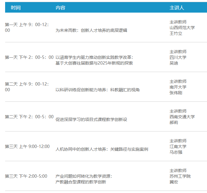 创新是每一个老师面向未来的教育竞争力,更是每一个生命精彩绽放的自我礼赞。人人皆需创新,人人皆可创新。根据《2025年下半年全国高校教师网络培训计划》,学校特选派邓凤敏等8名教师参加9月27-29日线上举办的面向未来的教育竞争力:创新型人才培养能力提升专题研修班。