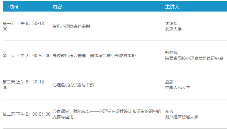 为贯彻落实国家关于加强和改进新时代学生心理健康工作的部署要求,切实推动高校心理健康教育与教育教学深度融合,提升师生心理健康水平与教育教学质量,根据《2025年下半年全国高校教师网络培训计划》,全国高校教师网络培训中心拟于2025年10月28日-31日线上举办心育与教学同行:高校师生心理健康融入教育教学实践的路径专题培训。学校特选派邓君兰等4位教师参加。