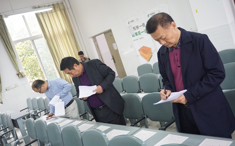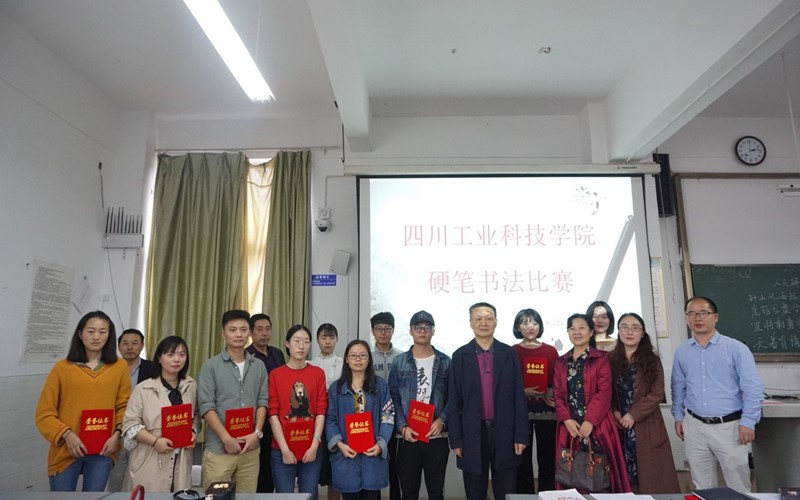 紧接着硬笔书法比赛中,各部门、二级学院共推荐出20名选手参赛。比赛现场,参赛者们个个神情专注,用心书写每一个笔画、每一个汉字。在短短的1个小时内所完成的粉笔和钢笔作品都笔画流畅,结构匀称,整体美观。比赛结束后,由图书馆馆长廖洪清、评估办处长严代红、财经学院院长卢淑梅、教育学院院长吴节义、教育学院党支部书记熊定永组成的学校评委团,对所有作品进行了认真地评比。