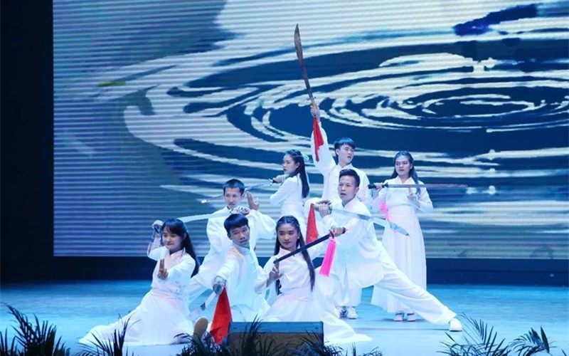 我校作为大会“留学生风采展示文艺晚会暨颁奖典礼”的参演单位,携师生自创的极具中华传统文化的节目—《乐品四大名著》,该节目将四大名著乐曲与太极扇、剑舞、刀术、琵琶与中阮合奏等完美融合,其形式新颖,内涵丰富,表演精湛,赢得到会领导嘉宾的一致好评。