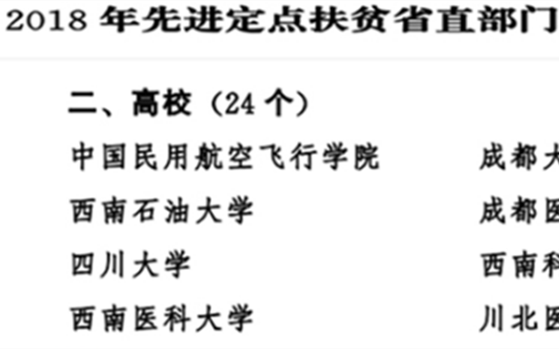 近日,中共四川省委、四川省人民政府下发《关于表扬2018年脱贫攻坚先进集体和先进个人的决定》(川委〔2019〕295号),对脱贫攻坚先进市 (州)、省直部门 (单位)、个人进行表彰,我校获评“2018年先进定点扶贫省直单位”,我校定点扶贫工作荣获省委省政府表彰。