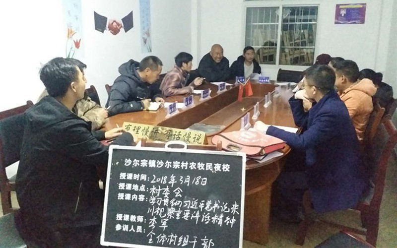 为了尽快解决群众懒惰的思想和等靠要的观念,李军同志提出加强农牧民夜校建设,以农牧民夜校为载体,及时宣传党和国家的强农、惠农政策。317日晚,第一期农牧民夜校,他以学习贯彻习近平总书记来川视察的重要讲话精神结合乡村振兴战略,及沙尔宗村实际情况,为全体村干部作了专题讲座,并一起讨论,共话发展。