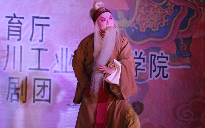 和京剧、越剧等中国戏曲一样,川剧也分生、旦、净、末、丑角5个行当,但川剧的各行当均有自成体系的功法程序,在文生、小丑、旦角等的表演上颇具特色,在戏剧表现手法、表演技法方面多有卓越创造,将中国戏曲中虚实相生、遗形写意的美学特色展现得淋漓尽致。当晚的首演节目川剧合奏《盛世川韵》将川剧中的以锣鼓为代表的乐器及其特点做了展示,紧接着生旦净末丑、高腔、川昆、胡琴、灯戏、弹戏等声腔与行当的轮番展示让全场观众耳目一新。增进了学生对川剧的了解。