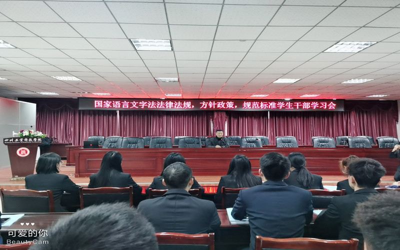 12月18日,学校在图书馆408召开国家语言文字法律法规、方针之策、规范标准学生干部学习会,四川工业科技学院语言文字推广中心全体学生干部参加此次学习会。