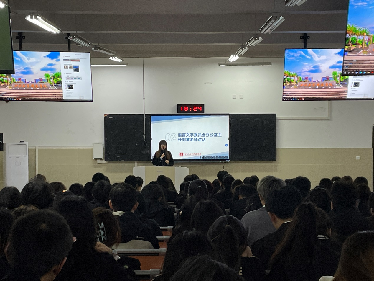 大会伊始,语言文字工作委员会办公室主任刘琴老师回顾了推广中心在语言文字规范化、推广普通话等方面所取得的显著成绩,并对所有成员的辛勤付出表示了衷心的感谢。她强调,语言文字是文化传承的载体,是沟通交流的桥梁,希望新一届的干部和成员能够继续发扬优良传统,为推广规范语言文字贡献自己的力量。