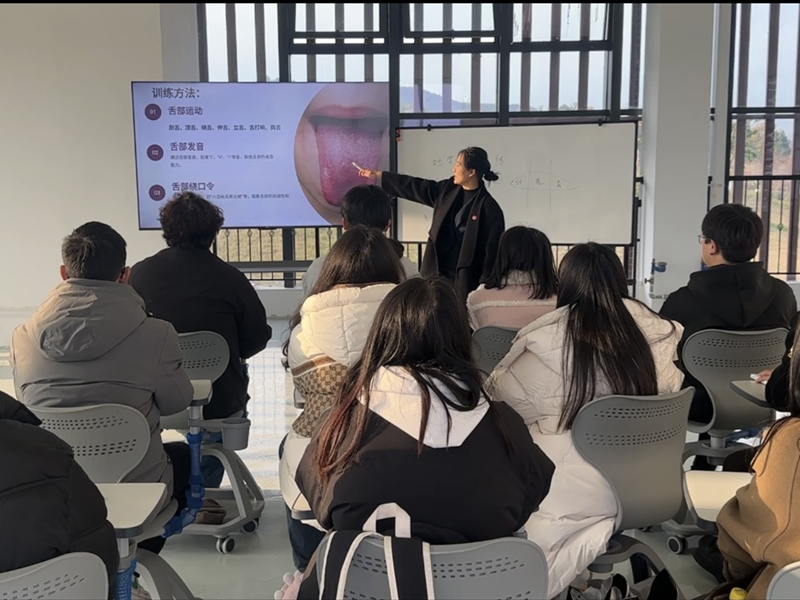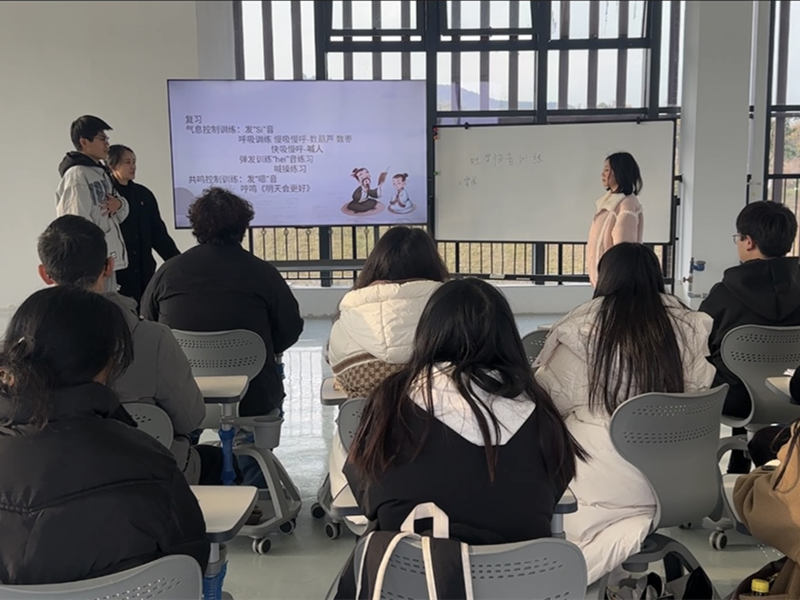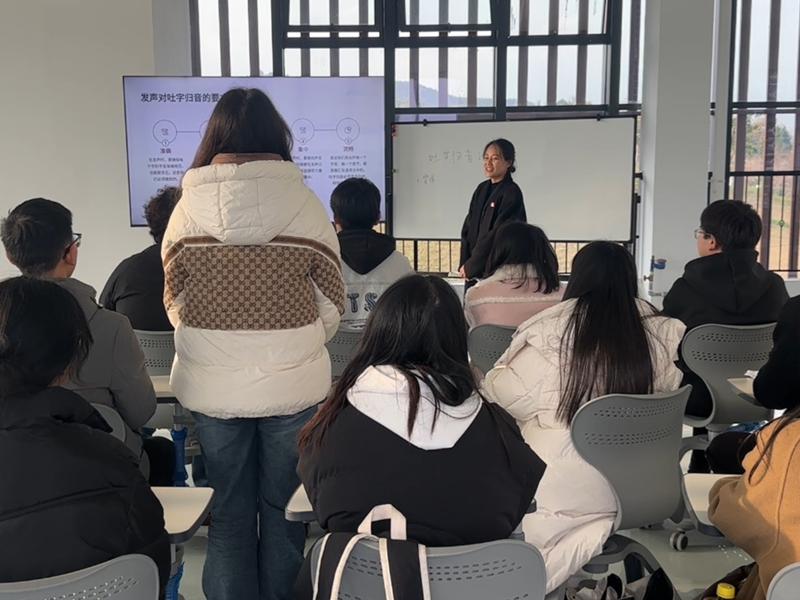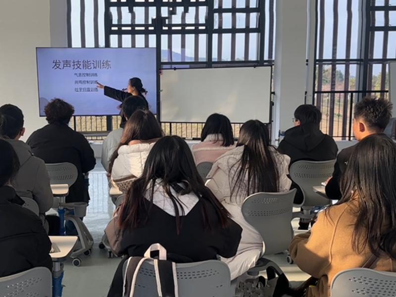 12月12日下午,语委办在水街北段创新创业学院的二楼培训室举办了一场专业授课。此次活动特别邀请播音主持专业毕业的覃艺老师作为授课教师。