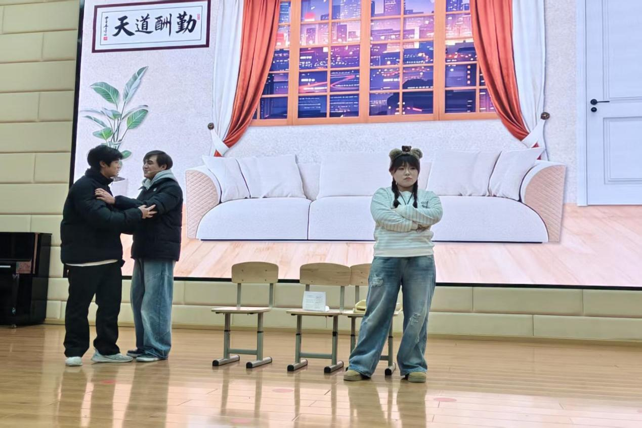 活动正式开始前,现场播放了检察院未检工作宣传片,迅速营造出浓厚的法治氛围。主持人简要阐明活动主旨后,学校志愿者表演的情景剧《父女换位假说》精彩呈现。该剧聚焦《家庭教育促进法》,通过父女角色互换的巧妙构思,生动揭示了家庭教育中常见的沟通障碍,并清晰传递了相关法律要求。剧情贴近生活、表演鲜活幽默,在引发学生与家长共鸣的同时,使法律条文变得具体可感、易于理解。