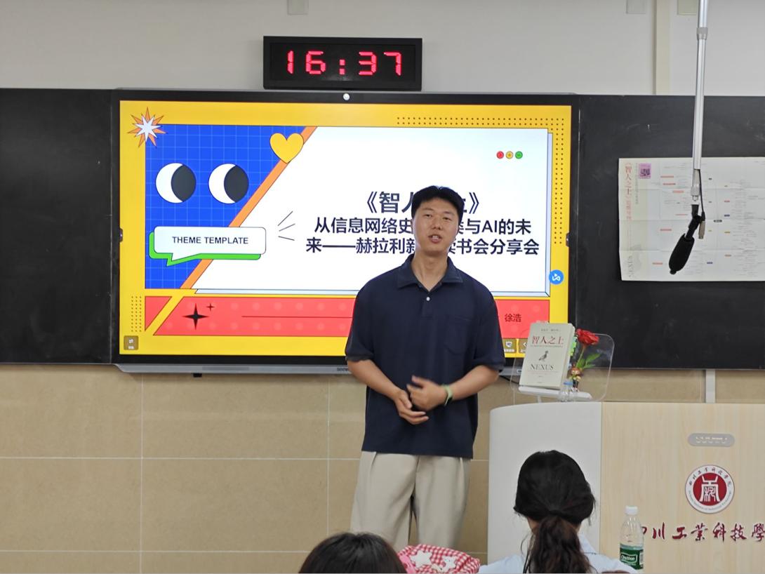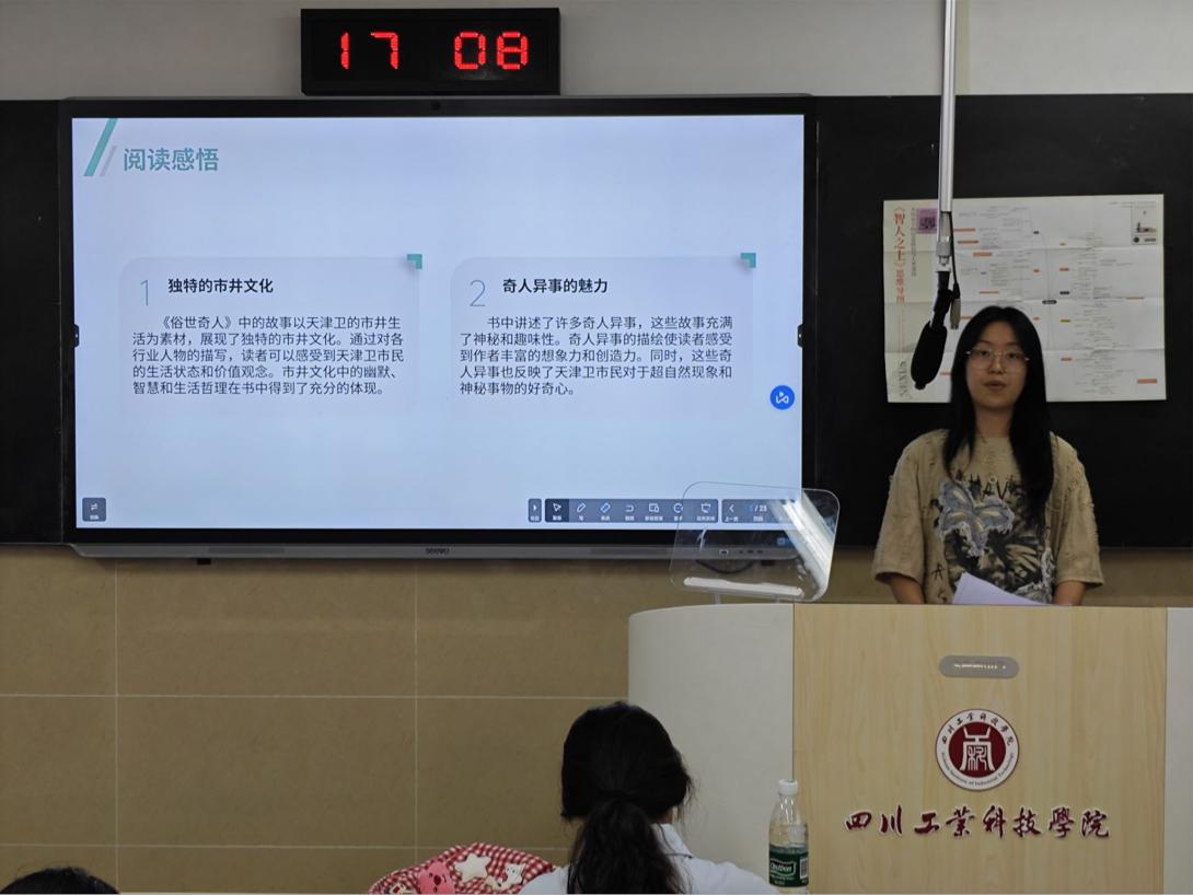 在本次活动中,学院徐浩老师分享了《智人之上》,以独特视角探讨人类文明发展;杨予晗、王语菲同学分别解读了《云边有个小卖部》和《俗世奇人》,展现不同维度的文学魅力。学院师生通过多元视角诠释经典作品,将传统文化和现代思维巧妙融合,为现场观众带来丰富的阅读体验,充分展现出学院师生的思辨能力与演讲风采。
