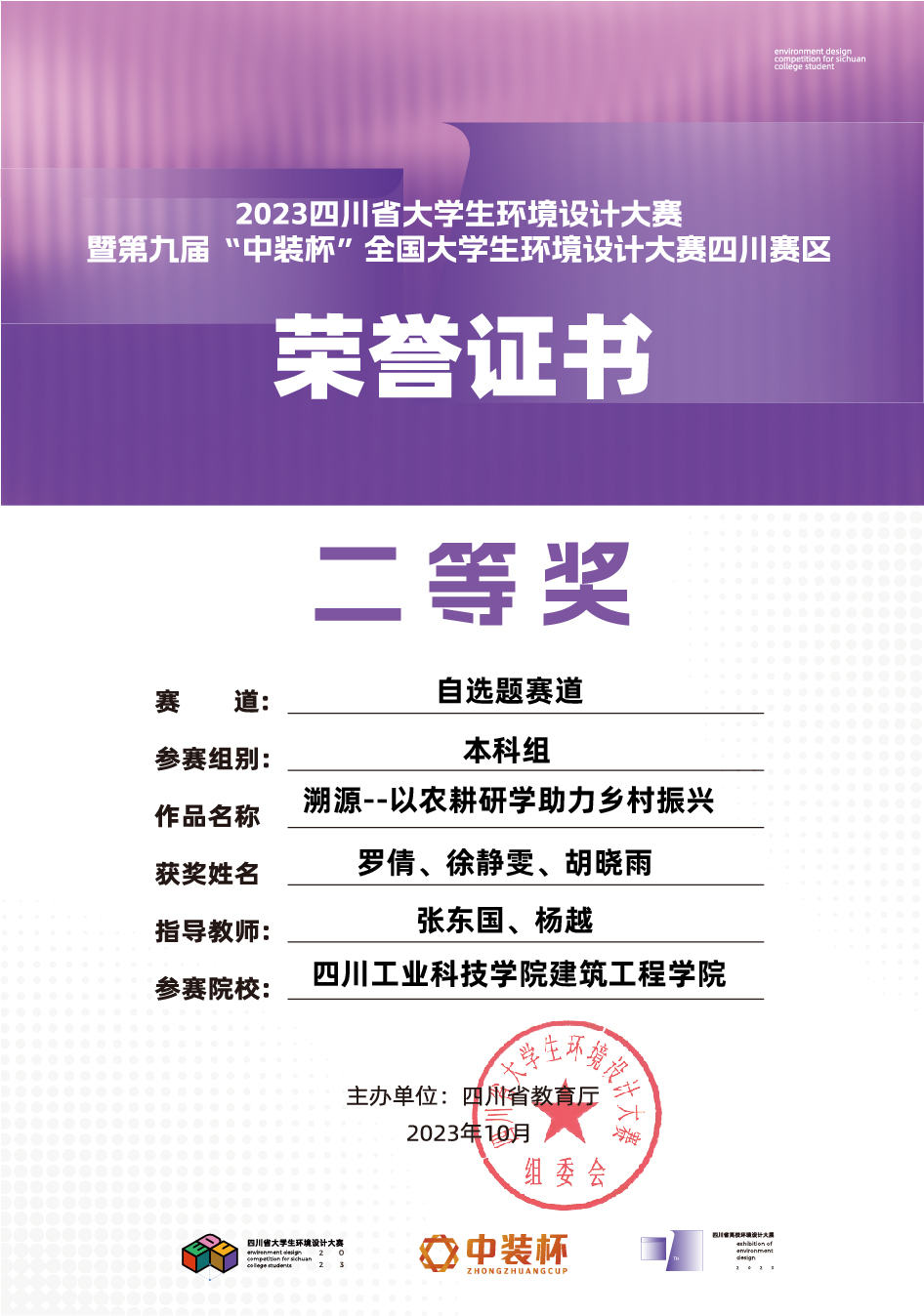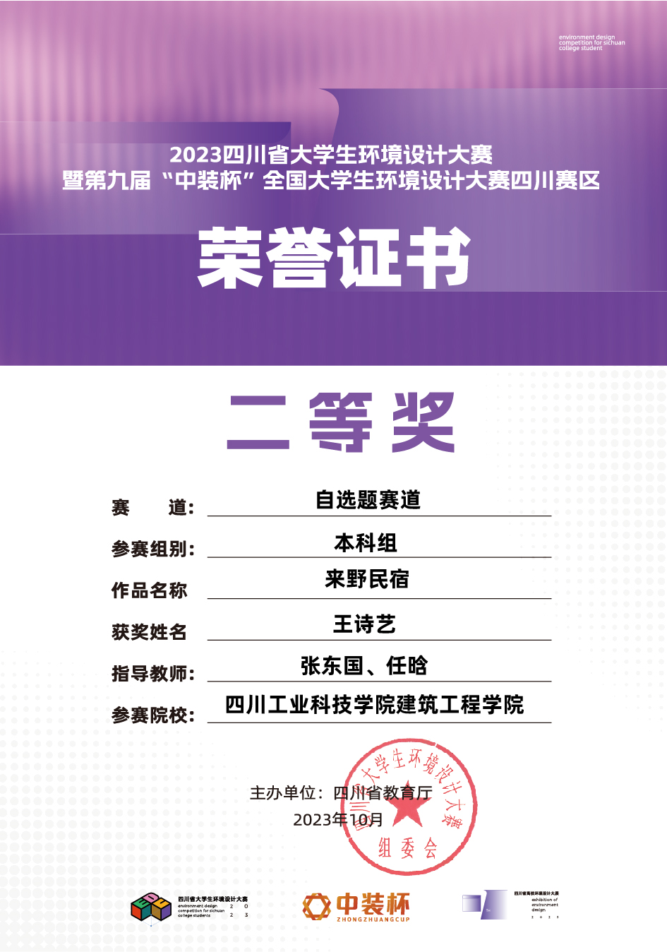 近日,由四川省教育厅主办,四川旅游学院承办,中国民主同盟四川省委员会、中国建筑学会室内设计分会、中国建筑装饰协会指导的2023四川省大学生环境设计大赛暨第九届“中装杯”全国大学生环境设计大赛四川赛区颁奖典礼在四川旅游学院举行。经过激烈的角逐,我院选送的师生作品荣获一等奖1项、二等奖2项、三等奖3项。