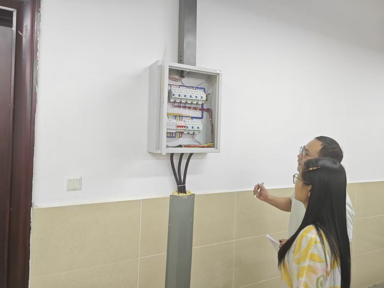 检查小组对实验室设备运行状态、消防设施、用电安全及环境卫生等方面进行了细致排查。特别对BIM实验室的强电配电箱、灭火器压力、门窗安全及卫生状况等重点部位进行了专项检查,确保不留死角。