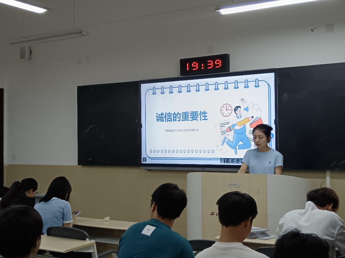班会聚焦考试诚信、个人信用和交友诚信三个维度,旨在培养学生诚信品质,营造崇信尚廉的校园文化。