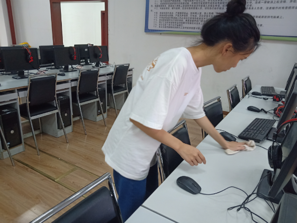 5月12日下午,同学们在负责人的带领下依次进入图书馆,按照事先的任务分工,有条不紊的投入到清扫工作中去。扫除内容包括地面打扫,桌面和书架的清理,书籍、桌椅的摆放与整理等。活动中,实践学生协调配合,默契十足,发扬不怕苦、不怕累的精神,努力认真的打扫每一个卫生死角,在一个多小时后高质量的完成了对图书馆综合阅览室和电子阅览室的清洁工作。