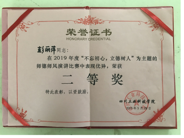 比赛中,我院参赛选手彭丽萍老师讲述了自己及身边同事扎根教坛、用爱感化学生的感人事迹。通过生动的事例、饱满的热情、朴实的语言诠释了教师“不忘初心 立德树人”的教育情怀,道出了建筑工程学院教师高尚的师德修养,表达了我院教师对教育事业的忠诚和热爱。经过激烈角逐,彭丽萍老师荣获本次师德师风演讲比赛二等奖。