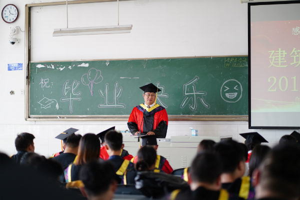 会上,陈堂寄语毕业生,并代表建工学院全体师生对2019届毕业生表示祝贺。陈堂表示,同学们顺利毕业并开启新的人生旅程。数年来,同学们与学校同发展、共进步,见证了学校点点滴滴的变化。同学们朝气蓬勃,积极进取,在校期间取得了各种荣誉,赢得了无数掌声,这都将为同学们的未来发展注入信心,夯实基础。同学们即将走入社会的大学,要继续学习,要持续不断的学习,不仅要继续学习专业知识,更要重视思想进步,要通过更多的社会实践,丰富理论知识,提升个人修养;要脚踏实地。从基层做起,从细节做起,践行学校校训所倡“明德、博学、笃行”的精神,自强不息,止于至善;要学会感恩。要感恩父母,感恩母校,要经常回母校看看,继续为学校的发展献言献计。