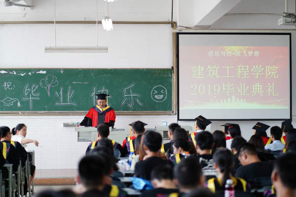 倪雨代表学校对建工学院2019届毕业生顺利完成大学学业表示衷心祝贺。倪雨表示,同学们即将迎来人生中新的旅程,在社会的大学里继续追寻自己的梦想。希望同学们在未来的职场中,不忘初心,怀揣理想,以求真务实的态度、以积极健康的心态去实现自己的人生价值;希望同学们心系母校,关注母校,多为母校的发展献言献策,母校是同学们最温暖的精神家园,欢迎我们的学子常回家看看,祝愿我们的学生前程似锦,事业有成。