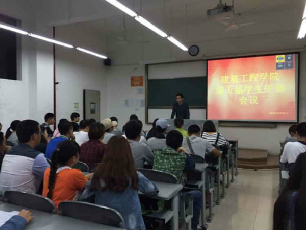 9月23日下午,建筑工程学院在钟灵楼302教室召开了第五届学生干部会议。此次会议领导给予高度重视,学院院长罗运辉,学院党支部副书记杨春,全体辅导员出席会议。同时唐院长莅临了本次会议并发表重要讲话。学院学生干部以及各班班长参加会议,会议由学生会主席李鸿主持。