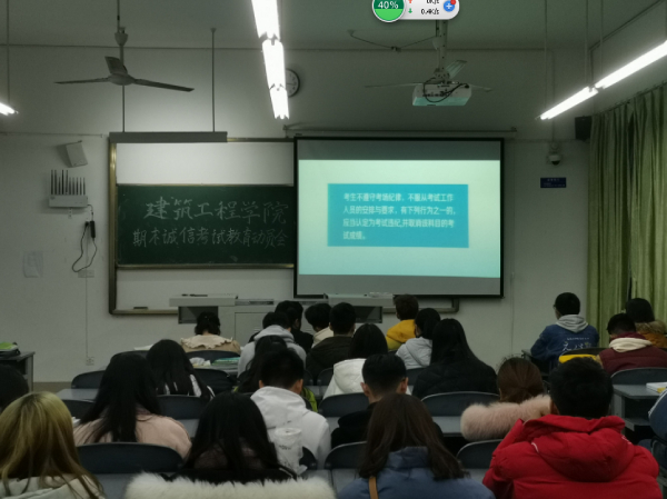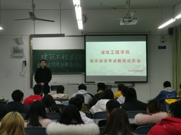 为严肃考风考纪,加强青年大学生的诚信教育。近日,建筑工程学院钟灵楼302教室举行期末诚信考试教育动员会。学院各年级、各班级学生干部参加会议。会议由蔡明老师主持。