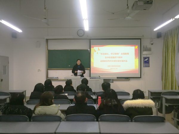 为深入学习贯彻习近平新时代中国特色社会主义思想,加强爱国主义教育,弘扬爱国主义精神。12月20日,建筑工程学院结合“不忘初心、牢记使命”主题教育活动,组织学员党员教师学习观看国庆70周年成就展及有关文献记录影视作品。