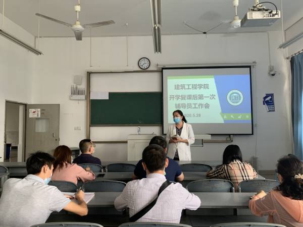 5月28日,建筑工程学院在钟灵楼401室召开了开学复课第一次辅导员工作会。学院全体行政及全体辅导员参加会议。