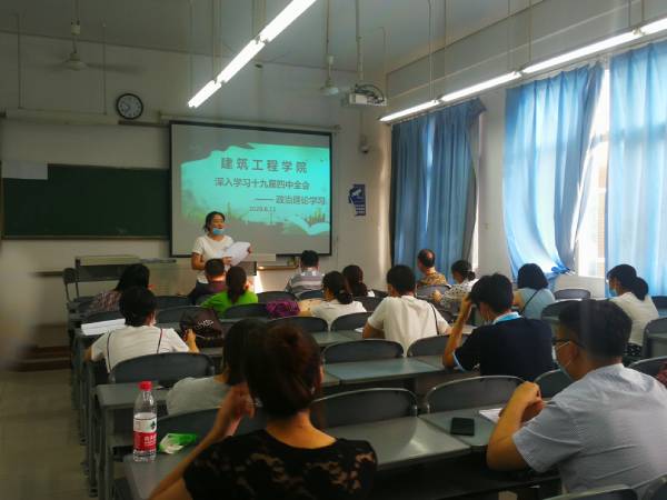 6月11日,建筑工程学院组织学院党员教师召开学习会,传达学习党的十九届四中全会精神和学校相关会议精神,并对学院贯彻落实四中全会精神进行动员部署。学院全体党员教师参加学习。