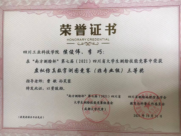 2021年10月31日,由四川省教育厅主办的“南方测绘杯”第七届四川省大学生测绘技能竞赛隆重举行。此次大赛吸引了来自全省31所高校,173支参赛队伍,总计500余名选手参赛。建筑工程学院的曹敏、孙芙蓉两位老师率领两支队伍6名同学参加了本次比赛