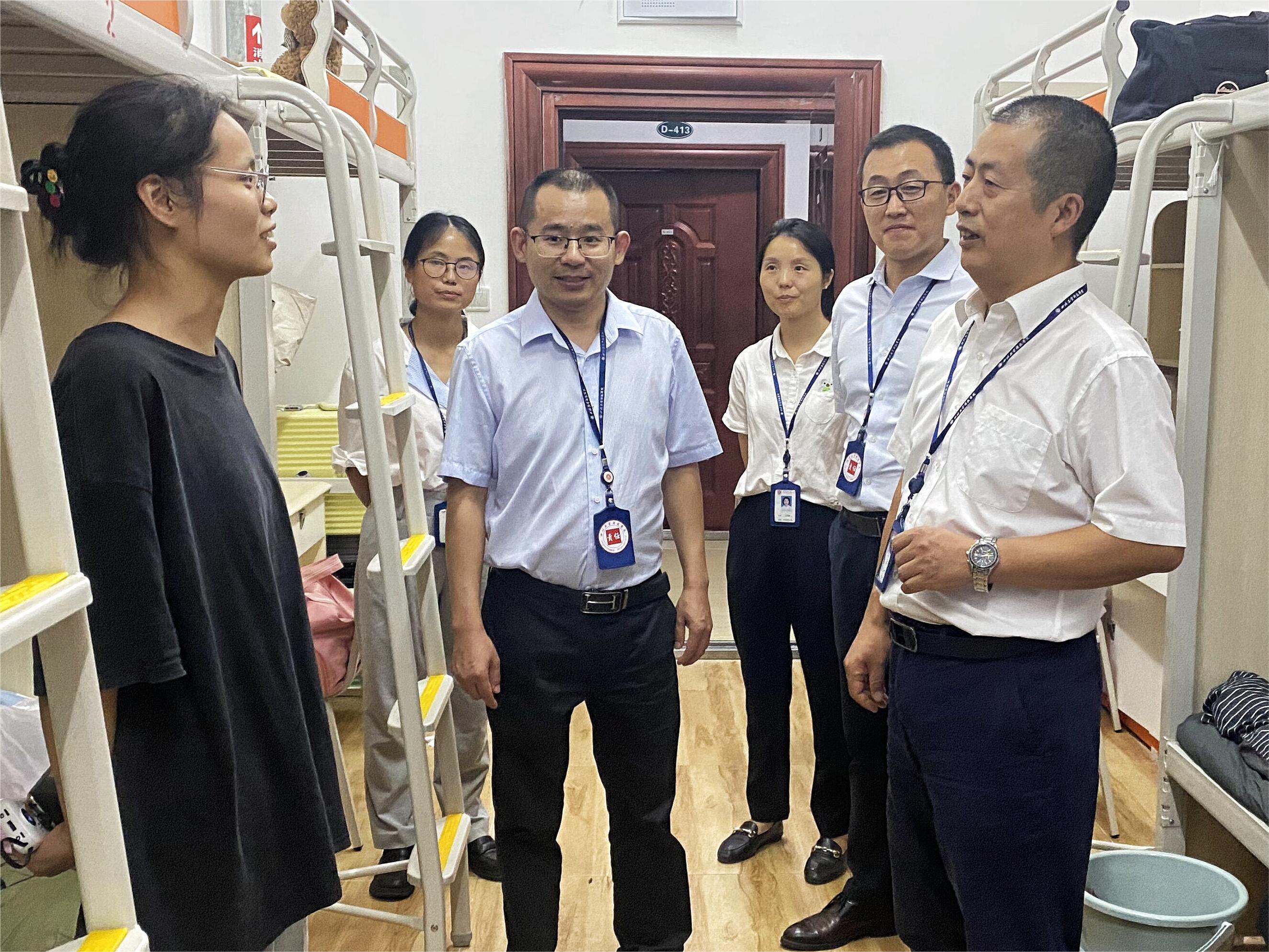 为进一步了解2023年专升本新生的校园适应情况,关注学生校园生活需求,引导新生尽快适应新生活、新环境。8月23日晚,学校党委书记张继华、学校党委组织部部长李富兵深入我院学生宿舍看望慰问2023年专升本新生,代表学校向学生传达亲切关心和关怀,学院院长陈堂、副院长孙芙蓉、党总支副书记张东国、副院长柯莉及新生班级辅导员陪同看望。