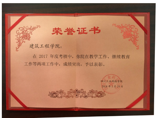 2017年建工学院在年度教学工作、继续教育工作两项工作表现突出,受到学校表彰。学院教师孙芙蓉、李军、柯莉等6位教师荣获年度优秀教师。
