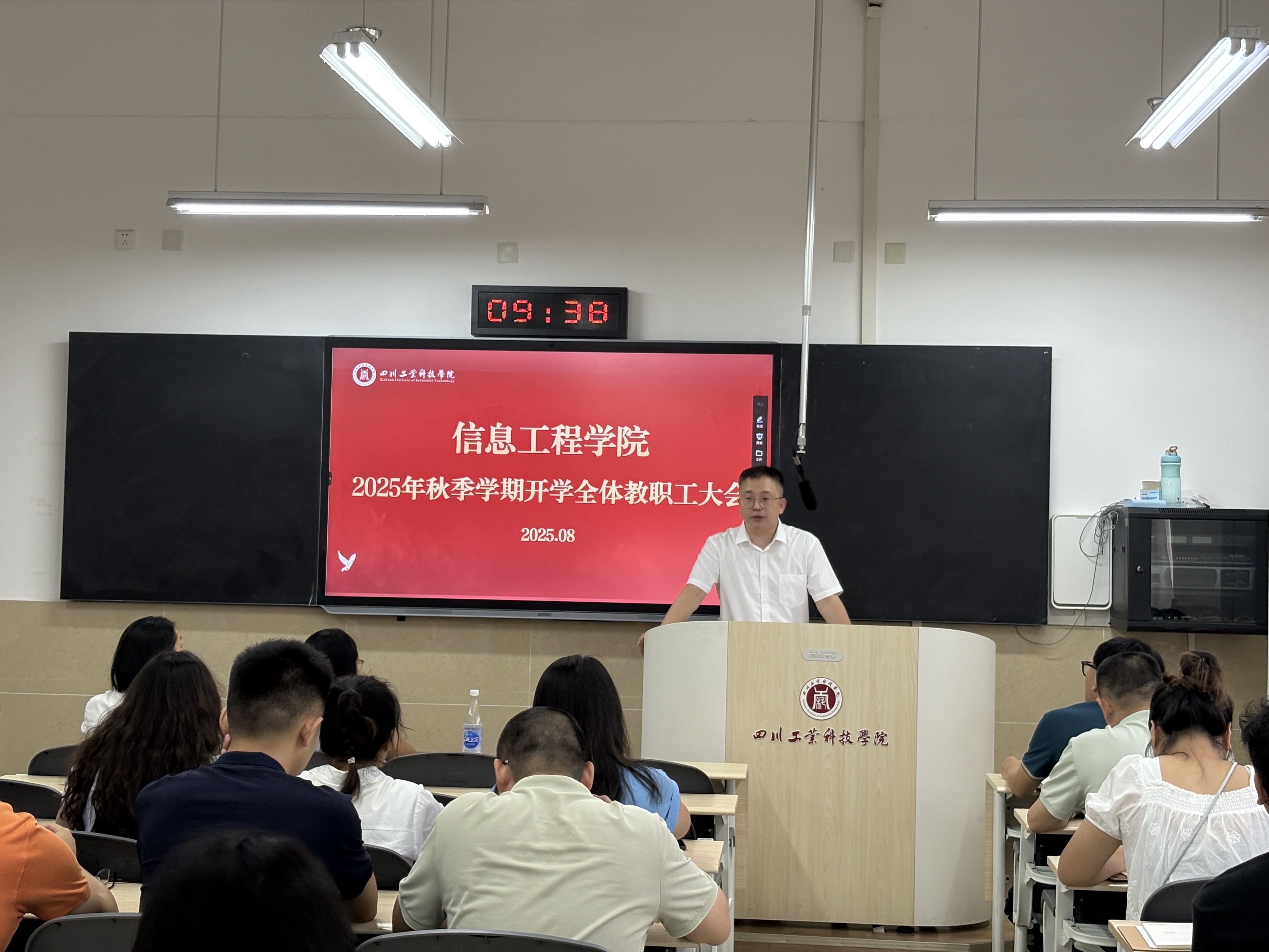 为保障新学期各项工作顺利开展,学院于8月22日上午在龑江D304召开2025年秋季学期开学全体教职工大会。学院全体教职工参加会议,会议由院长宋文正主持。