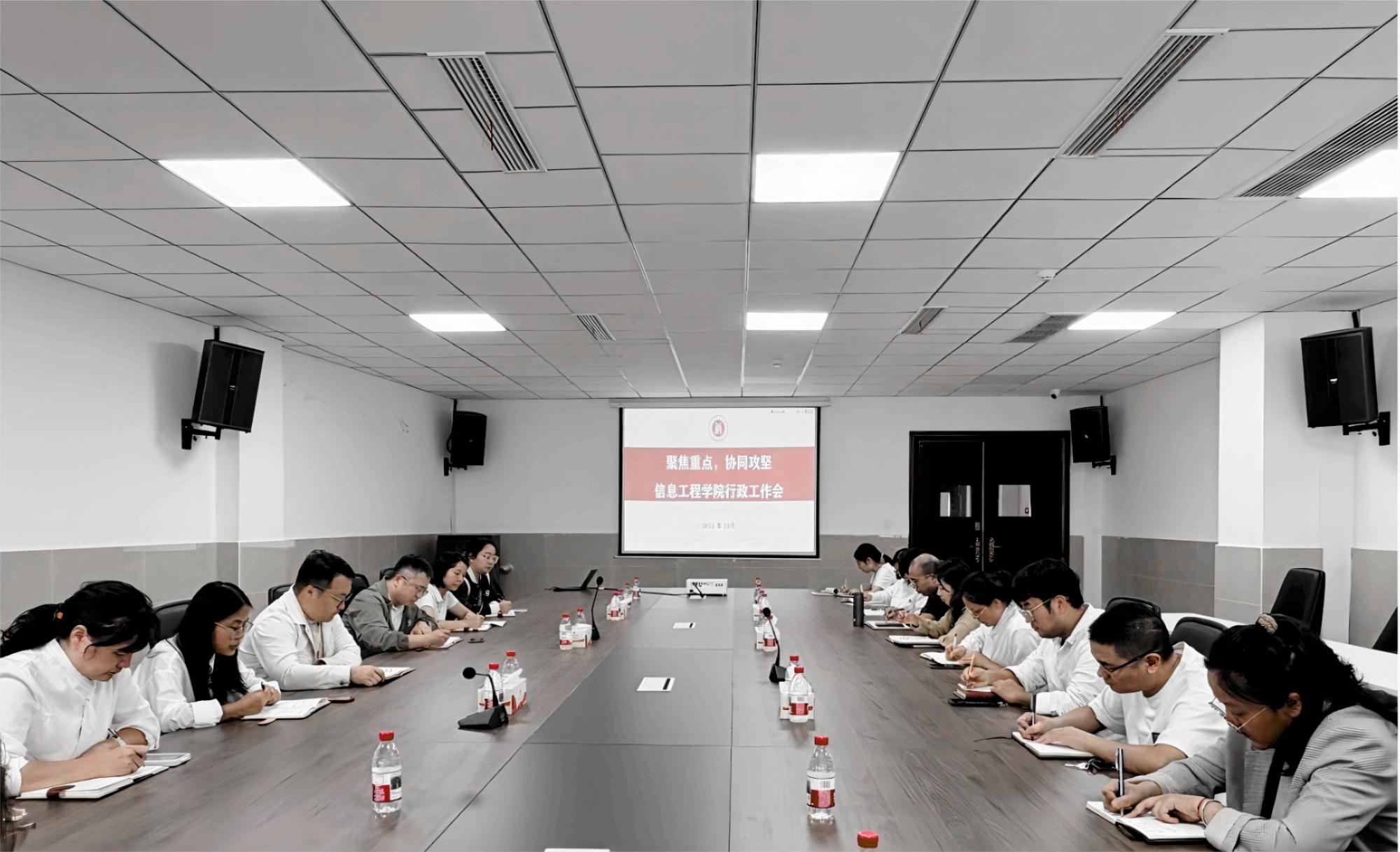 10月15日下午,信息工程学院在龑江E516会议室召开学期行政工作会,全面部署期中教学与行政管理工作。会议由院长宋文正主持,学院领导班子成员及全体行政人员参加。