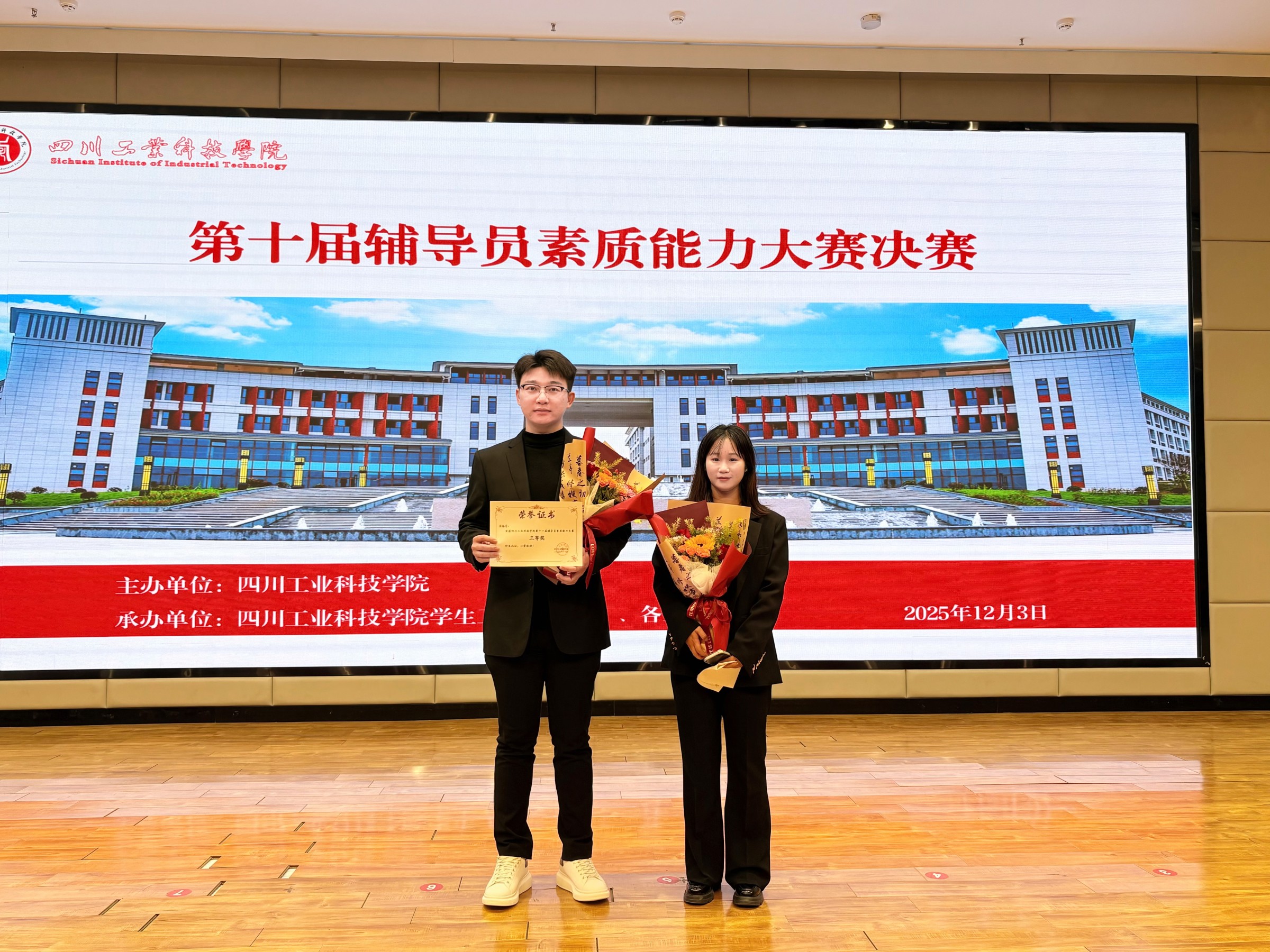 12月3日,学校第十届辅导员素质能力大赛决赛顺利落幕。学院选派的辅导员杜婷婷、周海峰凭借扎实的理论功底、过硬的职业能力和出色的现场表现,在比赛中脱颖而出。杜婷婷老师荣获大赛一等奖,周海峰老师获得三等奖,充分展现了学院辅导员队伍卓越的综合素养与育人成效。