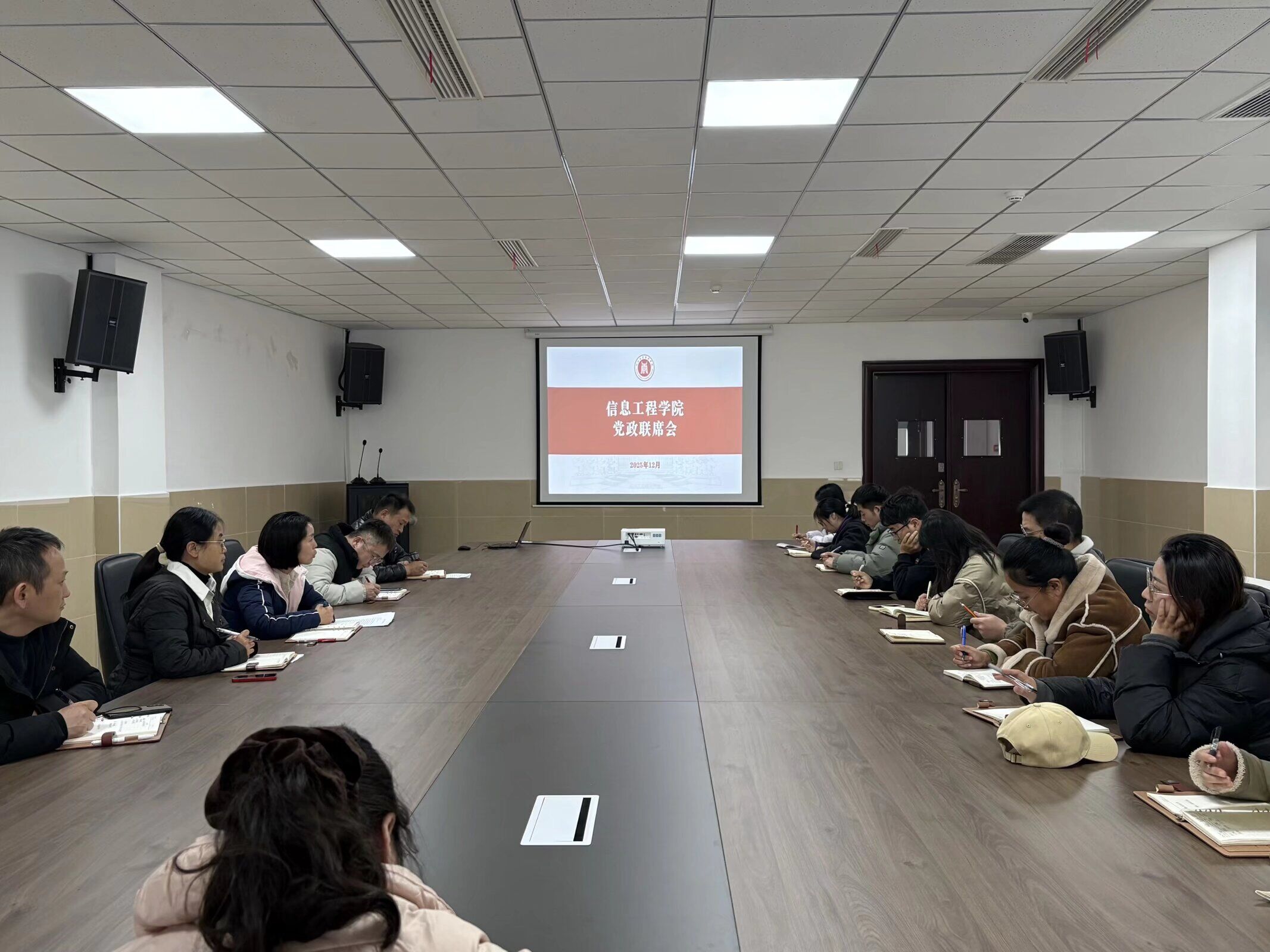 12月10日下午,信息工程学院在龑江E516会议室召开党政联席会。会议由院长宋文正主持,学院党政领导班子及全体行政人员参会。会议聚焦日常教学管理、专业建设等核心工作展开研讨,并就下一阶段重点任务作出统一部署。
