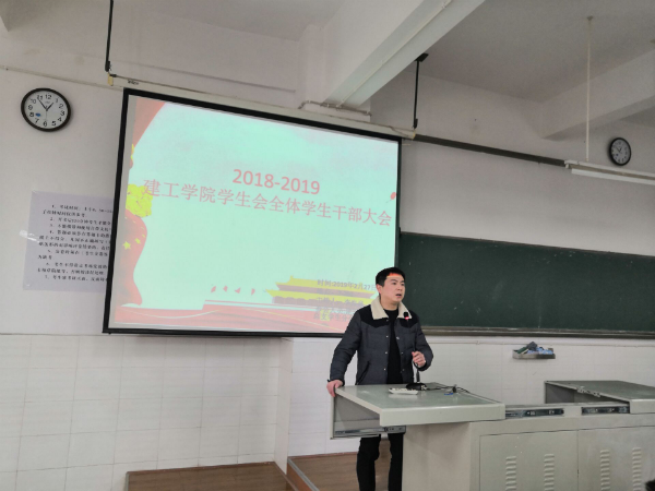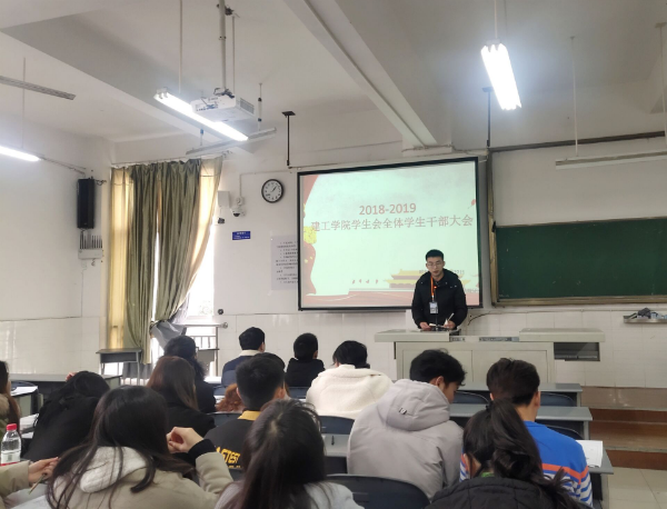 2月28日,建筑工程学院2018-2019学年度第二学期学生干部会议在毓秀楼101室召开。建工学院教师蔡明、江春雷及学院团总支学生会全体成员参加会议。