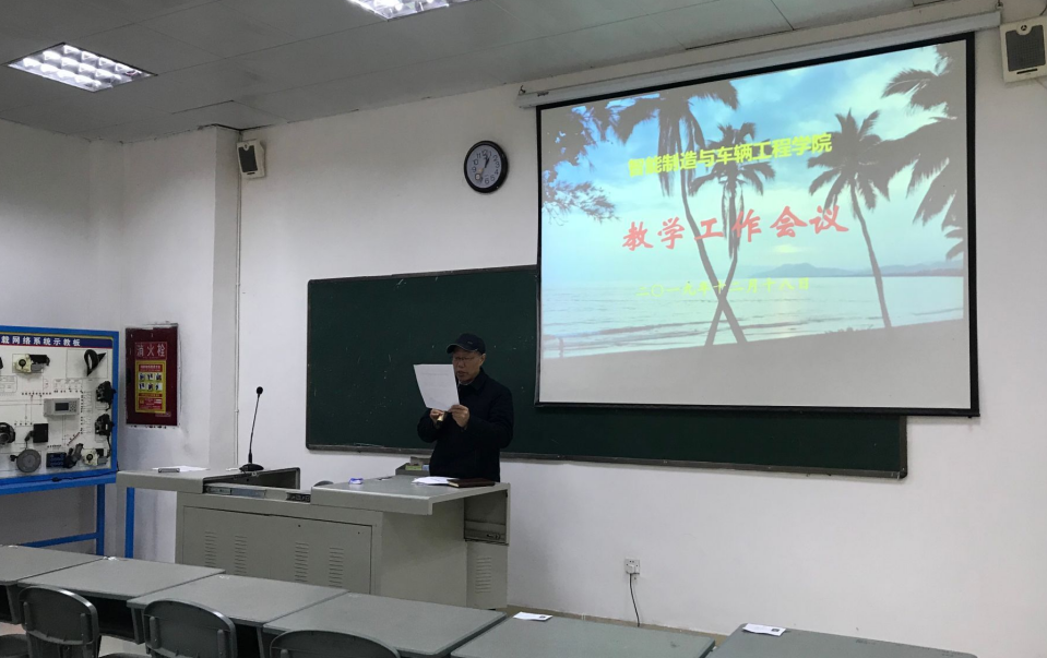 12月18日中午,学院在汽车实训中心102召开了2019-2020学年第一学期期末教学工作例会。学院院长刘国跃出席会议,学院全体教职工参会。会议由副院长徐纯厚主持。